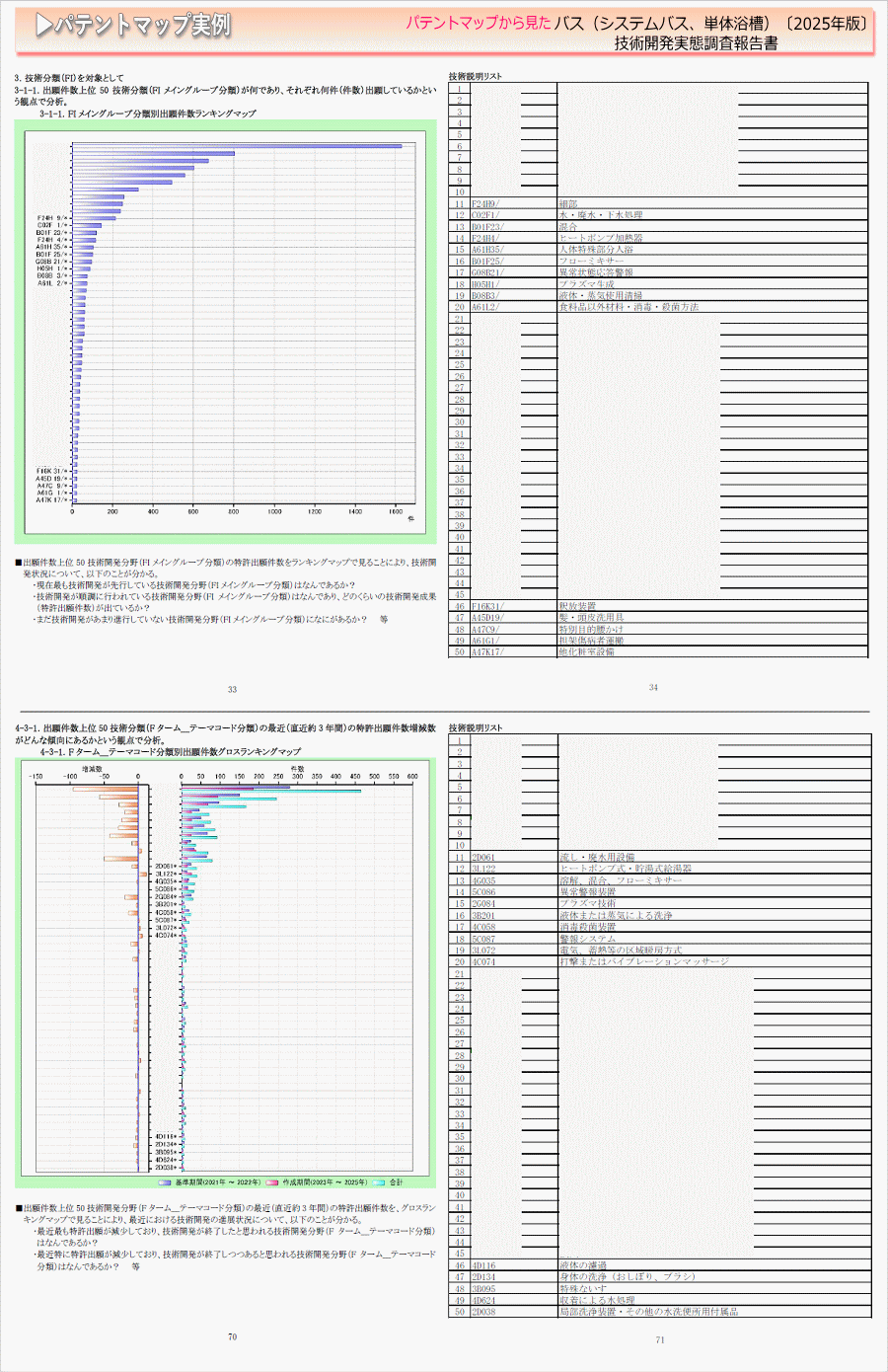 本調査報告書は「バス(システムバス、単体浴槽)」の国内出願日:2015年1月から2025年9月までに出願された公開特許について、検索、収集した。