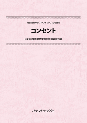 「コンセント」に関する出願件数、出願人(共同出願人)、特許分類などに対し、ランキング、時系列推移、技術分布図など様々な観点から分析したパテントマップを作成し、技術開発の実態を把握し今後の開発の指針決定に役立てようとするものである。