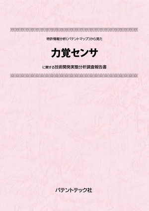 「力覚センサ」に関する出願件数、出願人(共同出願人)、発明者、特許分類などに対し、ランキング、時系列推移、技術分布図など様々な観点から分析したパテントマップを作成し、技術開発の実態を把握し今後の開発の指針決定に役立てようとするものである。