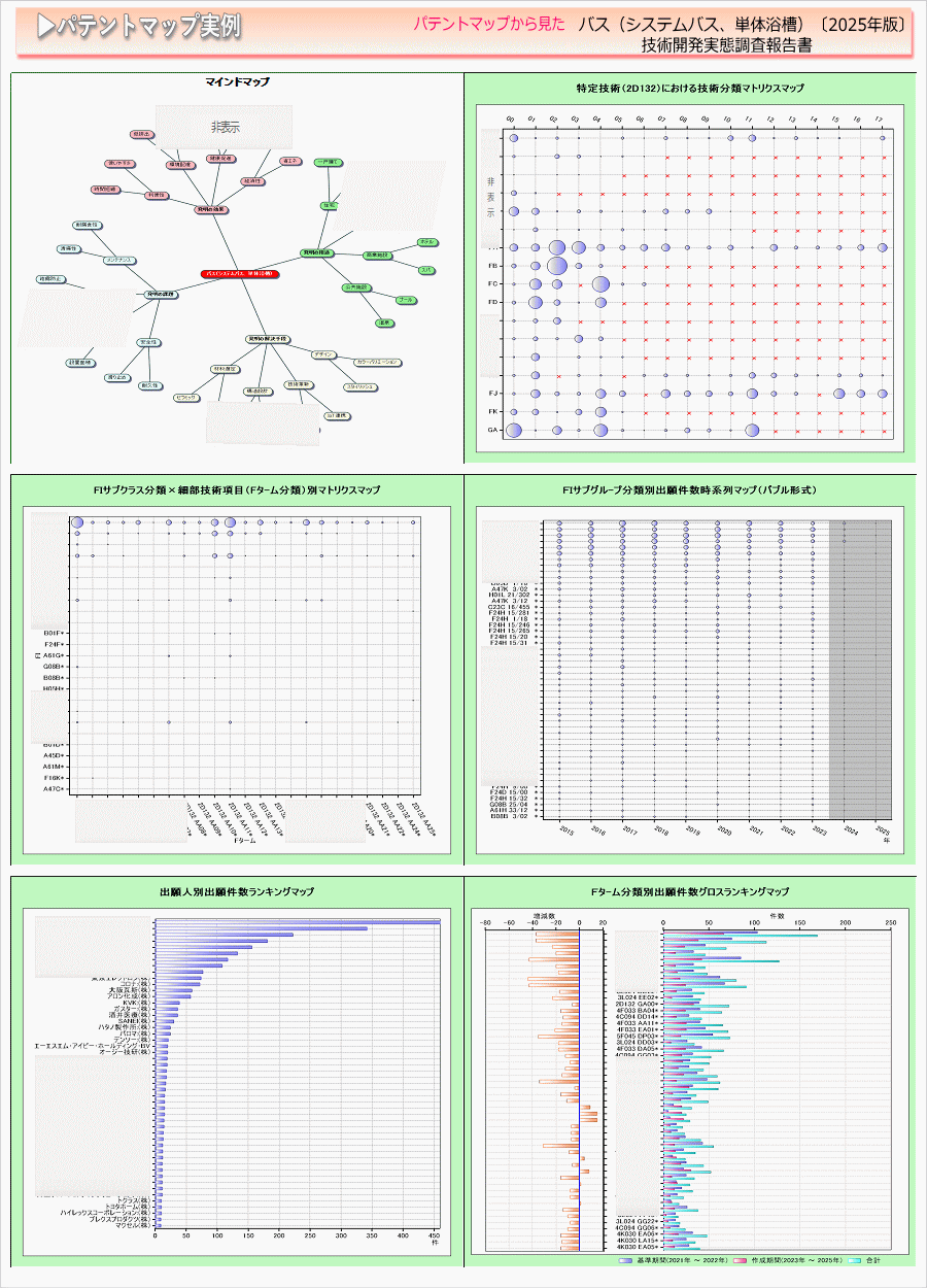 本調査報告書は「バス(システムバス、単体浴槽)」の国内出願日:2015年1月から2025年9月までに出願された公開特許について、検索、収集した。