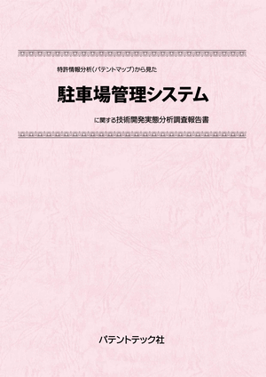 「駐車場管理システム」に関する出願件数、出願人(共同出願人)、特許分類などに対し、ランキング、時系列推移、技術分布図など様々な観点から分析したパテントマップを作成し、技術開発の実態を把握し今後の開発の指針決定に役立てようとするものである。